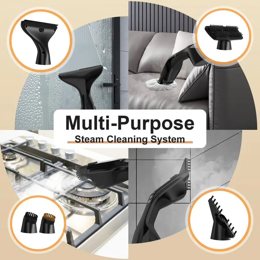 AllinOne Handheld Steamer Includes 17 versatile accessories for allround cleaning. It is not just a steam mop, but also a detachable handheld steam cleaner Easily clean bathroom faucets, wall grouting, kitchen grills, or even your car wheels